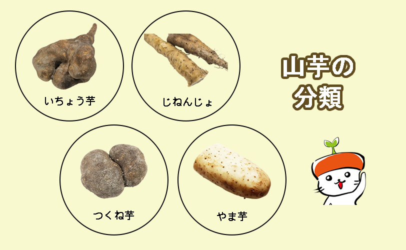 ナガイモ種にはさらに、細長い「ナガイモ群」、丸い形をした「ツクネイモ群」、イチョウ型の「イチョウイモ群」と形状によって3種類に分類されています。